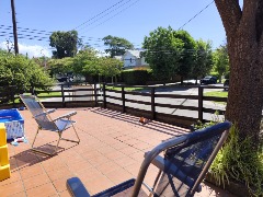 Jardín al fondo con parrilla, gran parque al frente